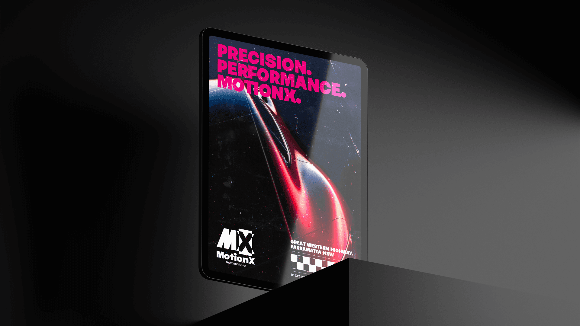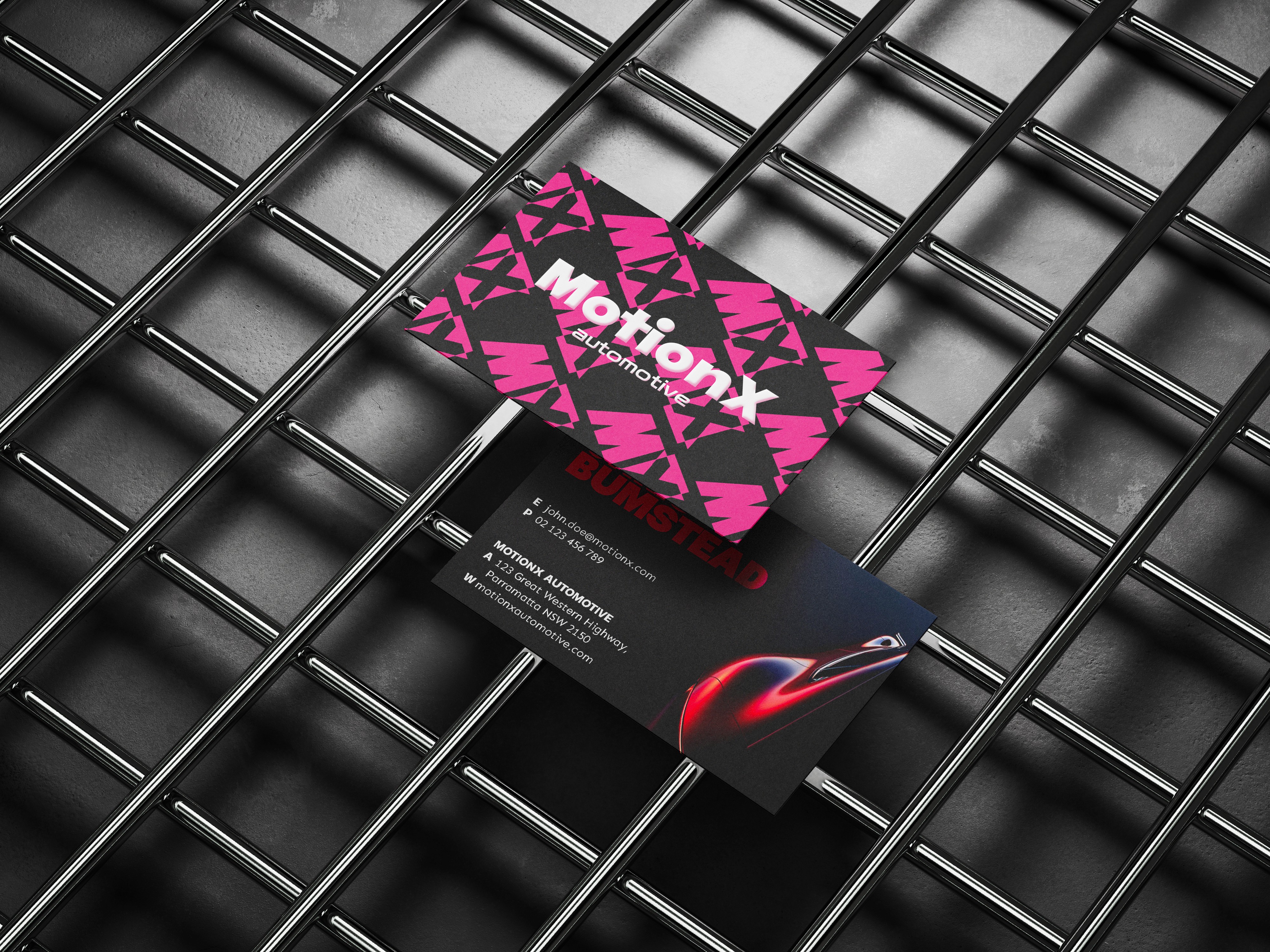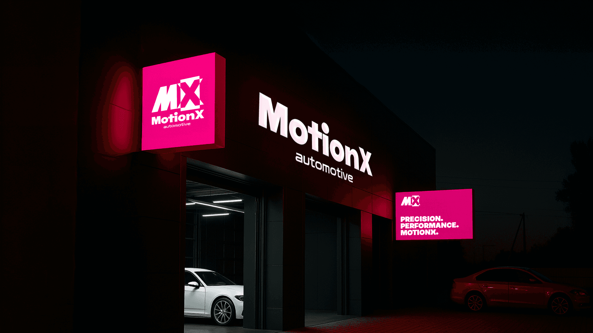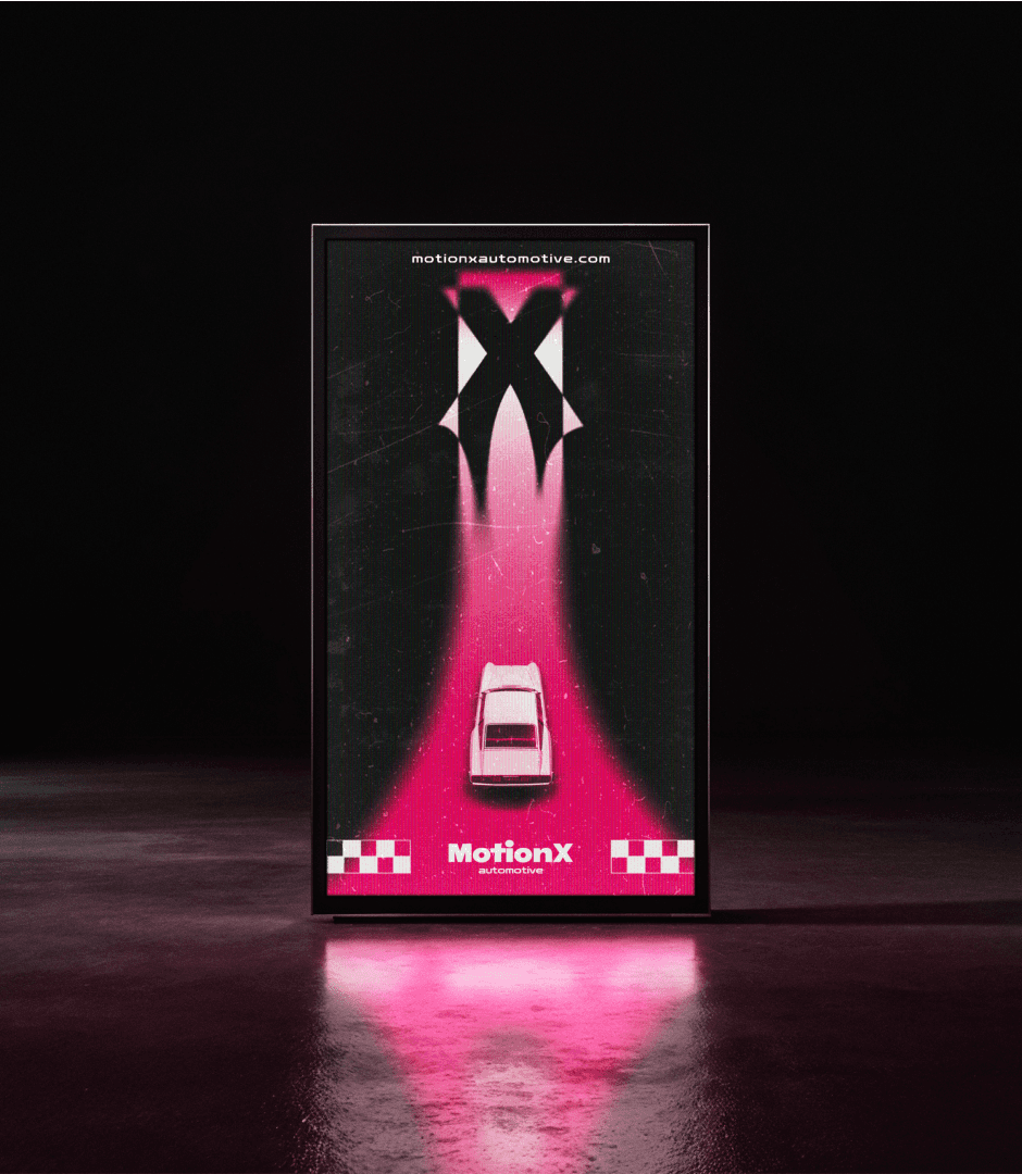 MotionX is a bold and dynamic brand concept developed for an automotive workshop that blends performance with precision. The visual identity is designed to evoke speed, strength, and modern craftsmanship — from a striking custom logotype to illuminated signage and a vivid, energetic colour palette. This branding project reflects MotionX’s commitment to motion, power, and a seamless garage experience.